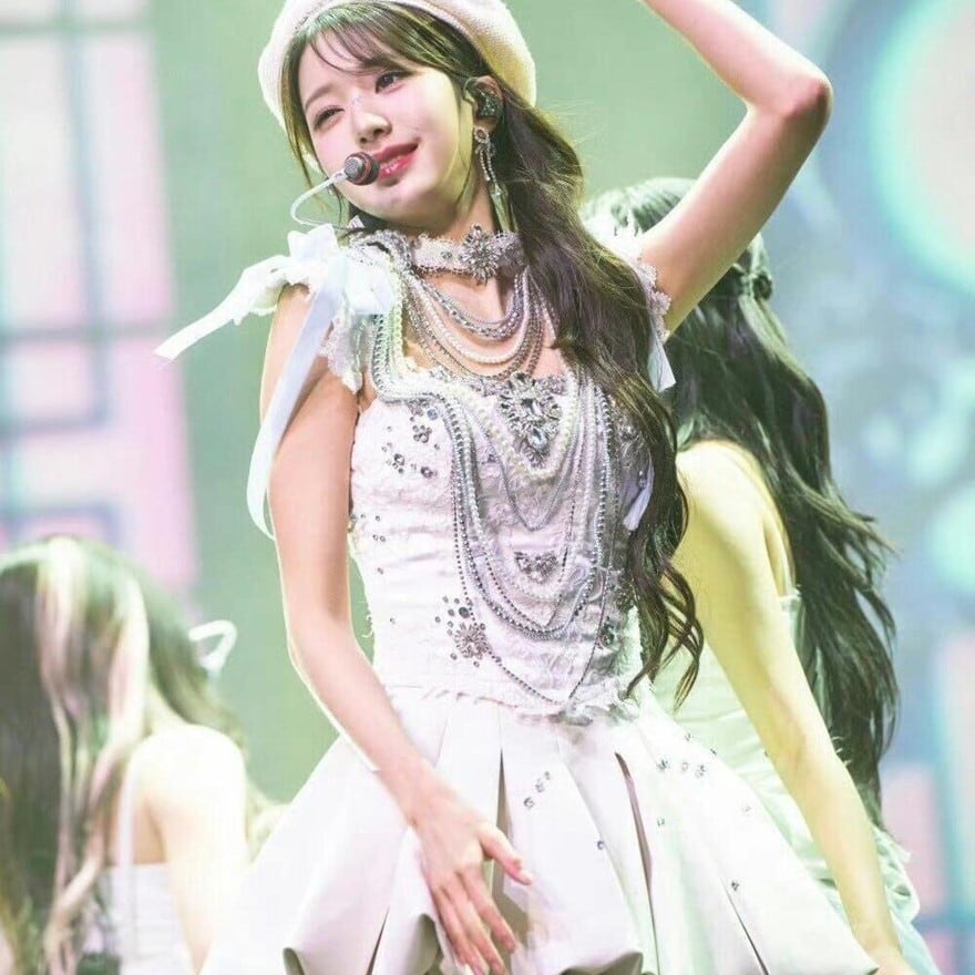 パール装飾と立体感のあるバルーンシルエットが特徴で、ステージや撮影会で光を受ける白コーデを探している方に最適です。甘さだけに寄らない華やかさがあり、動いた瞬間まで印象に残る一着に仕上がっています。