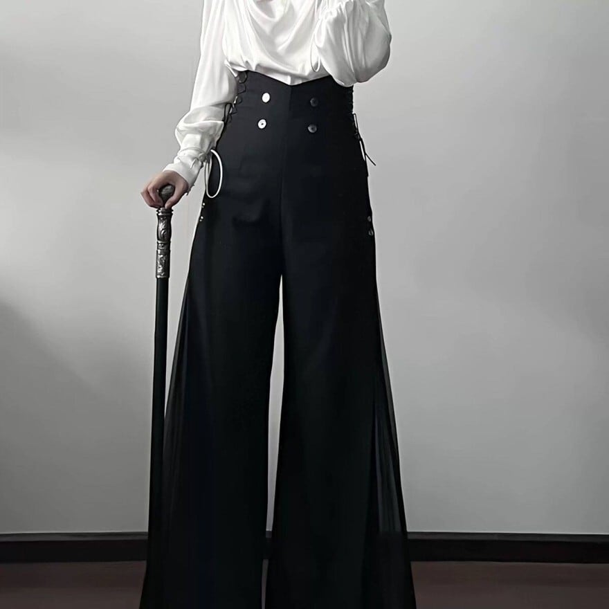 ゴスロリ|静かな威厳を纏う 大人ゴシックのハイウエストワイドパンツ ロングレイヤー|WithU