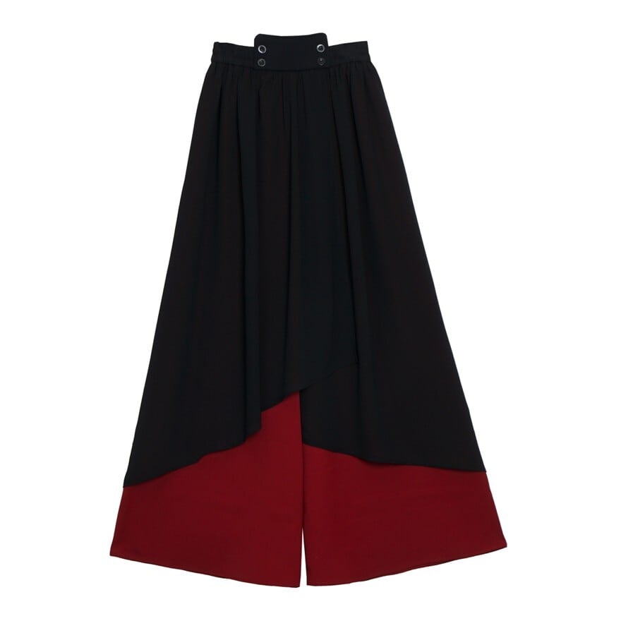 地雷系コーデは可愛さを出しやすい反面、スカートに偏りやすく、もう少し辛口で大人っぽいバランスに寄せたいと感じることがあります。このパンツは、脚のラインを拾いにくいワイドシルエットに加え、外側の黒いレイヤーから赤がのぞく構成で、スカートとは違う空気感を作りやすいのが魅力です。ブラウスやショート丈ジャケットを合わせるだけで、重たくなりすぎず、印象的な地雷系スタイルに仕上がります。