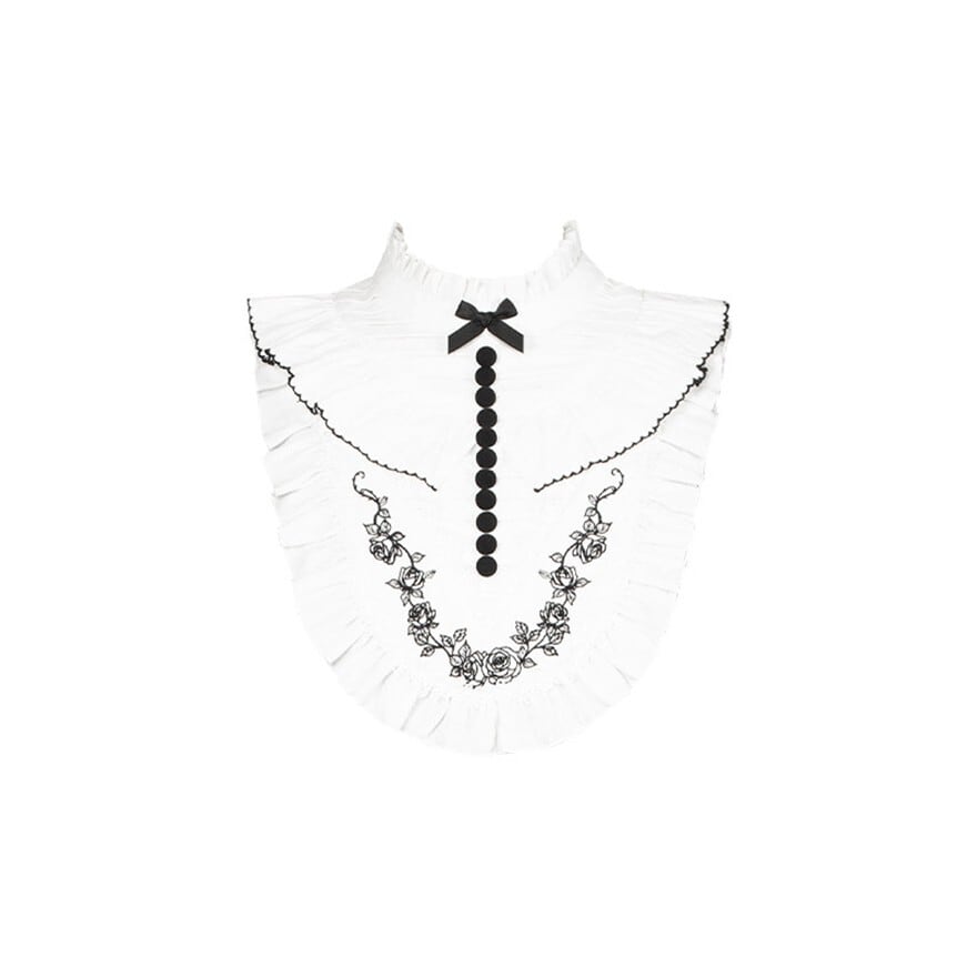 付け襟:ホワイトの付け襟タイプ。黒ドレスとのコントラストが際立つデザイン。