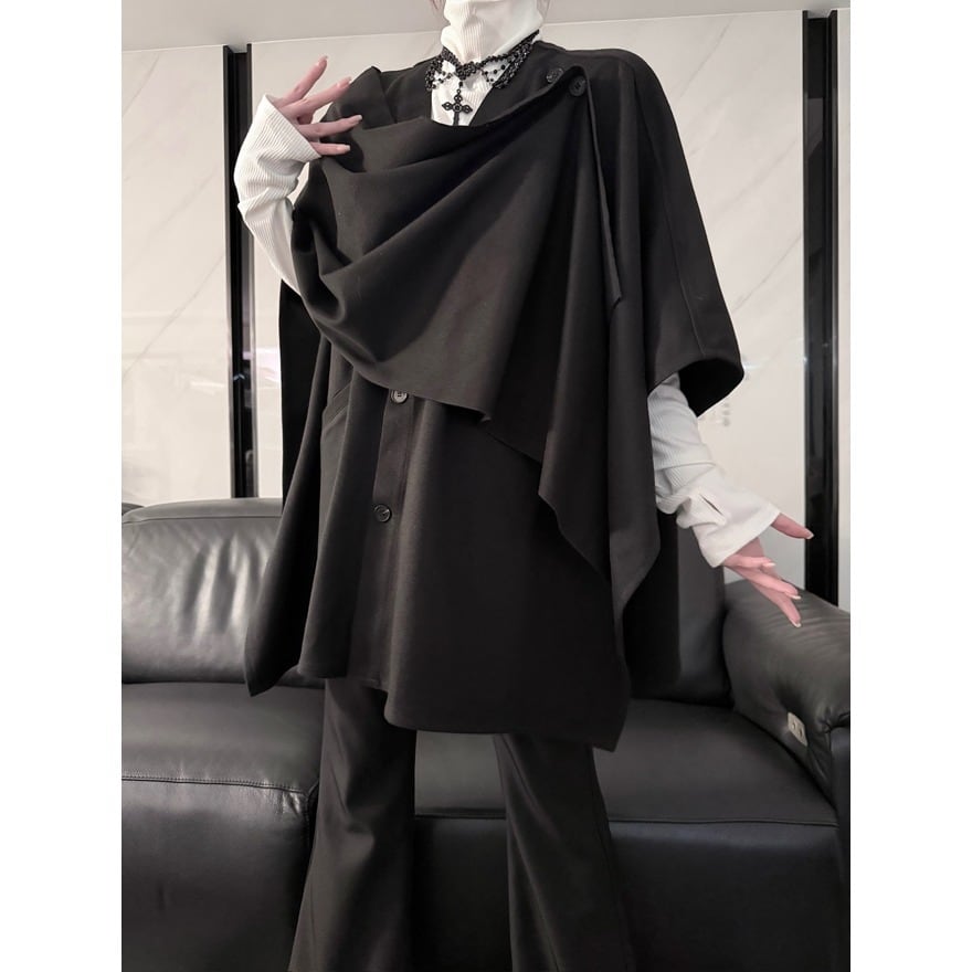 大人ゴシックの空気感を静かに纏える、クローク風シルエットのジャケット