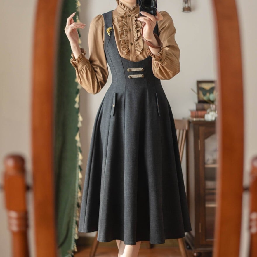・袖口:小さなフリルを添え、細部までクラシカルな統一感を感じられる仕上がりです。