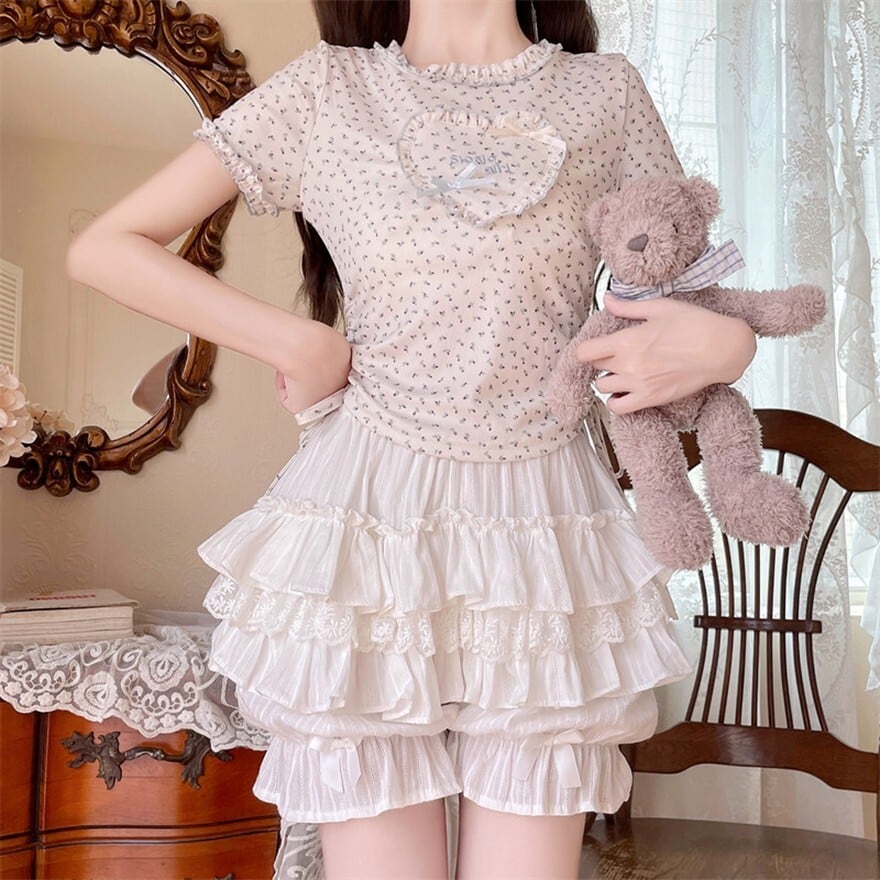 フリルがふわりと重なり、動いた瞬間にだけ覗くレースの余韻が、甘い世界観をそっと引き立ててくれる一枚です。