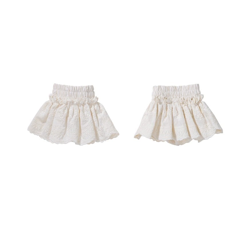 ・ボトム:ショートパンツにアシンメトリーな布感を重ねたような印象で、軽やかさの中に立体感を生みます。