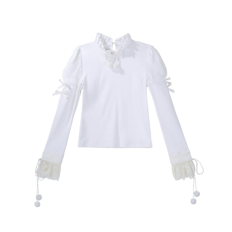 ・袖まわり:トップスの袖口にもレースとぽんぽん飾りがあり、手元まで愛らしくまとまります。