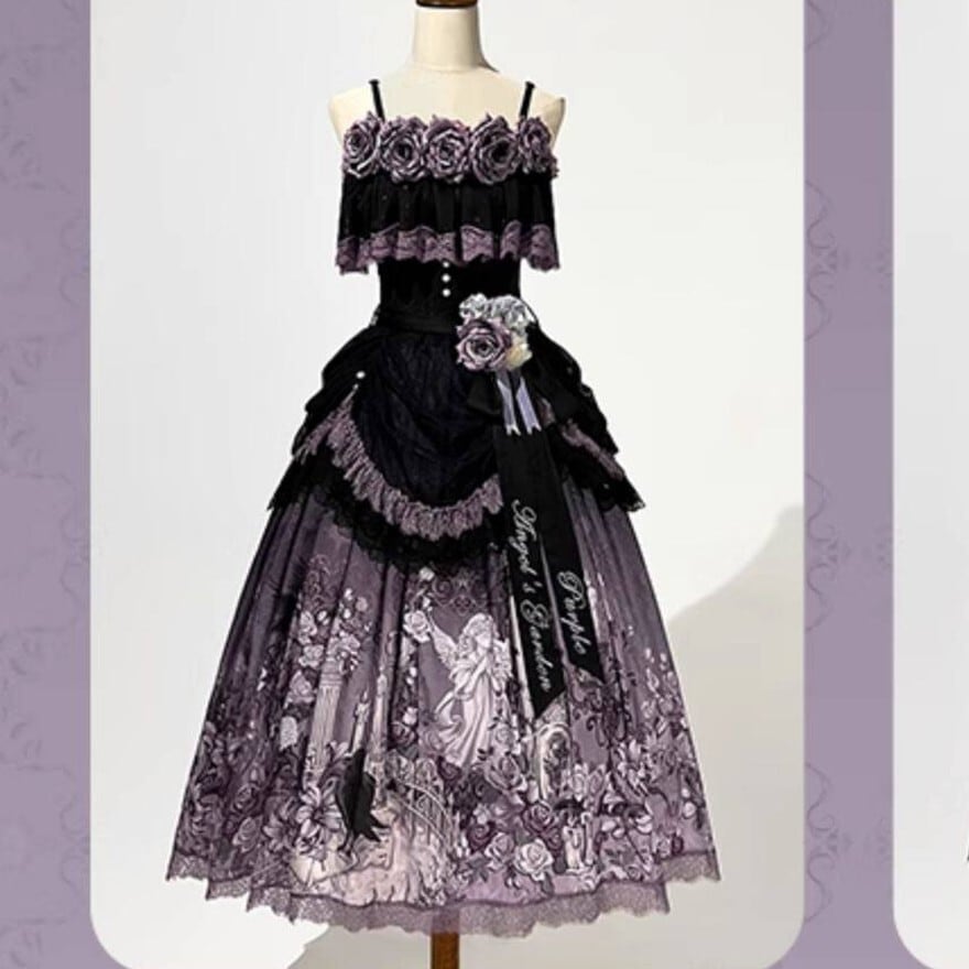 ゴシックロリィタ セットアップ 黒×紫ローズ キャミソール×スカート 撮影会向け|WithU