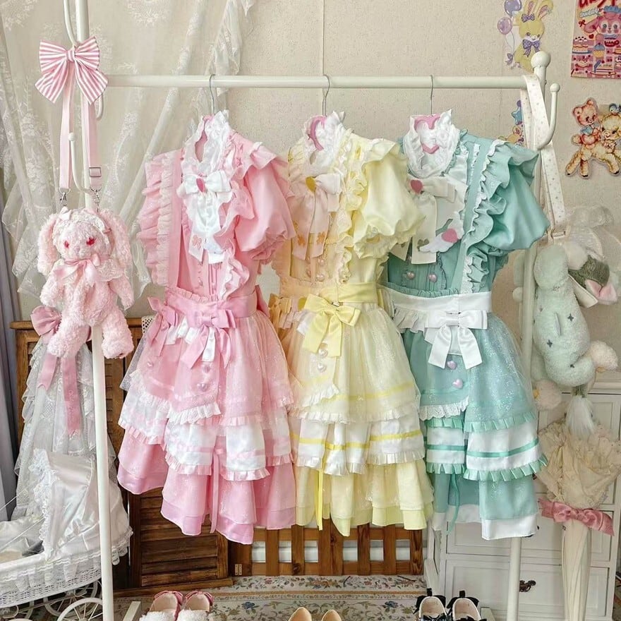 A. パステルカラーにフリルとリボンを重ねた、スウィートで華やかなロリィタワンピースです。