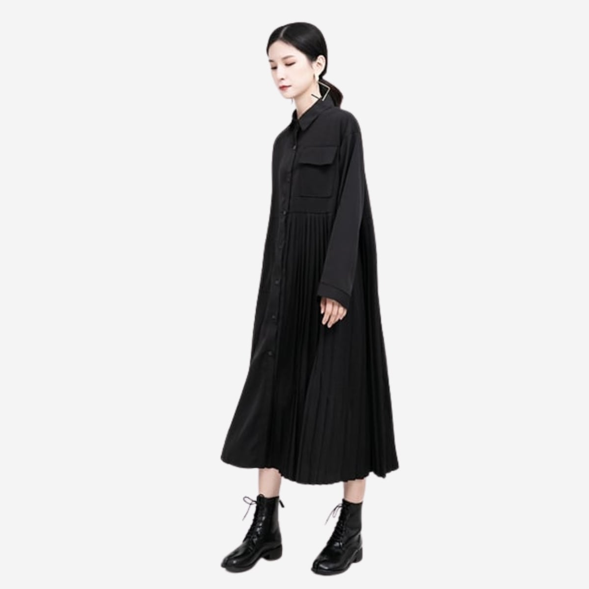 大人ゴシック シャツワンピース ボリューム 長袖 ロング ギャザー おしゃれ