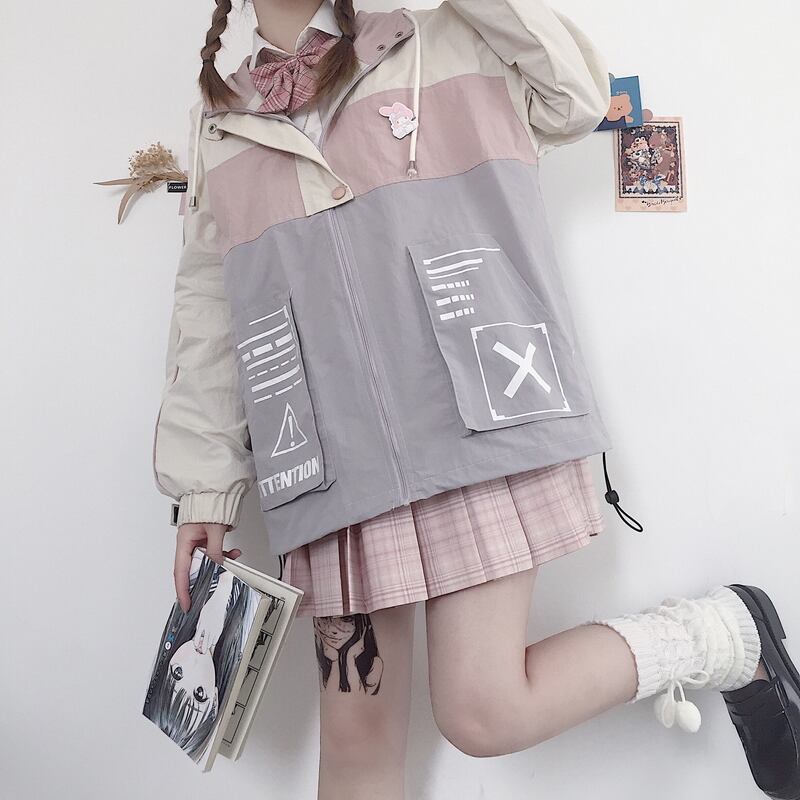 ゴスロリ通販 With U 再入荷 ゴスロリ系 パーカー ZIPアップ バックプリント 病み可愛い オルチャン 原宿系 JK風 ゴスロリ服 病み服