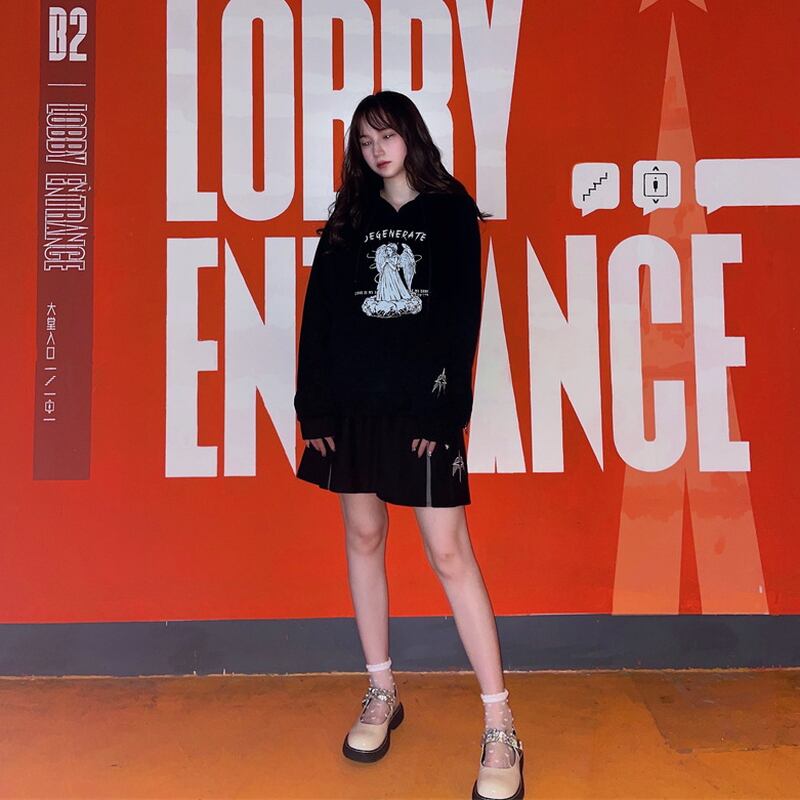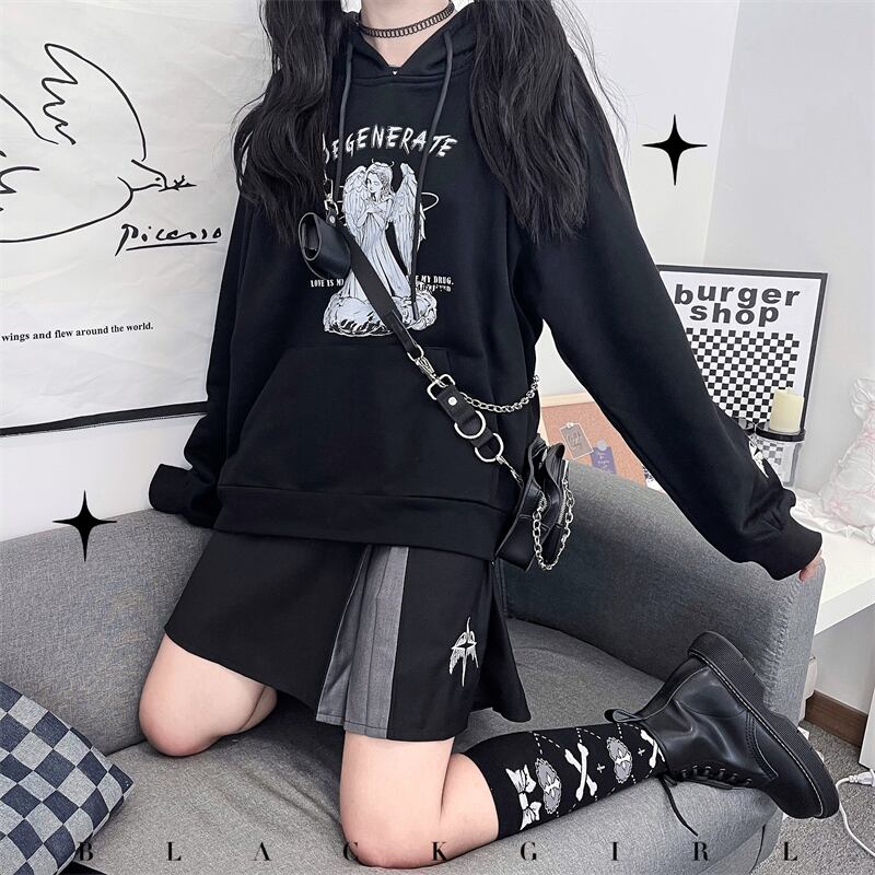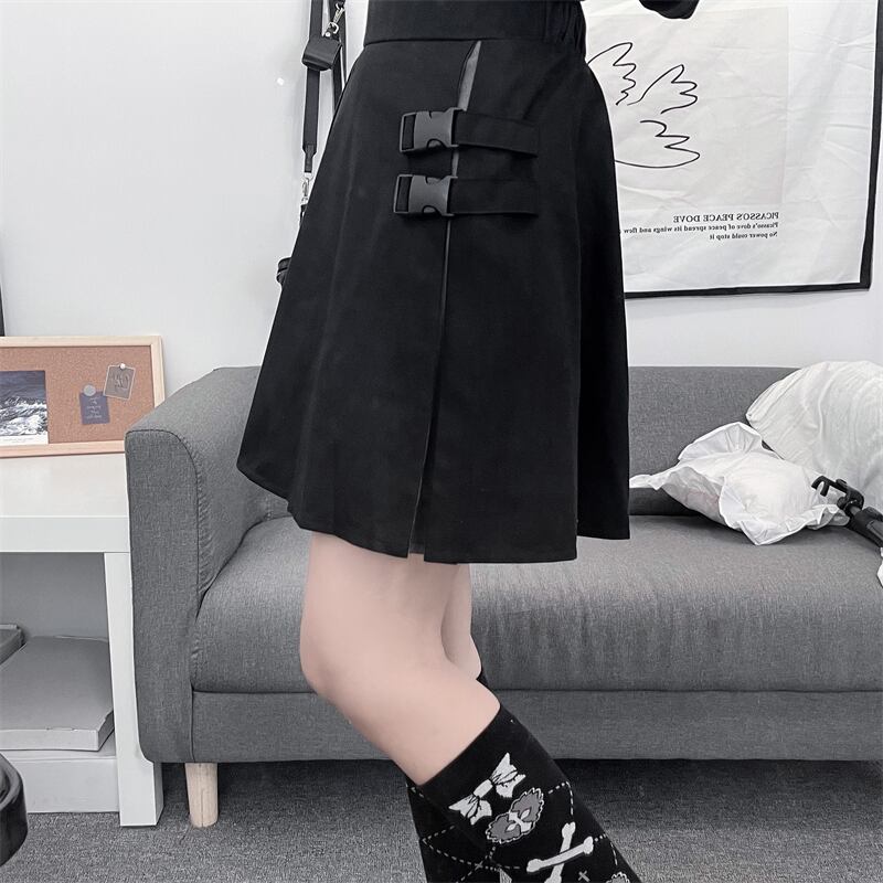 ゴスロリ通販 With U 病み可愛い プリーツ ミニスカ バイカラー サイドバックル JK カジュアル 原宿系 地雷系 10代 20代 ゴスロリ服 病み服