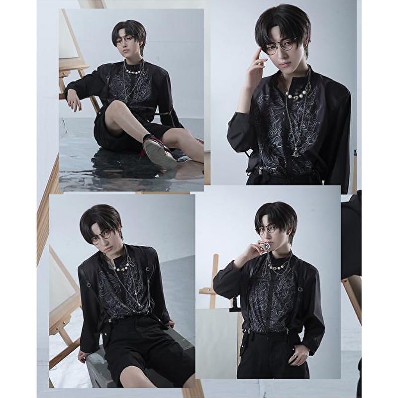 ゴスロリ通販 With U 7分袖 シャツ スタンドカラー ユニセックス ChineseGothic レトロ 病み可愛い 地雷系 バンギャ 原宿系 ゴスロリ服 病み服