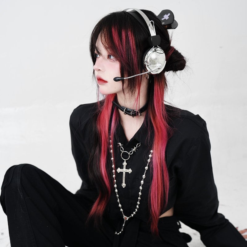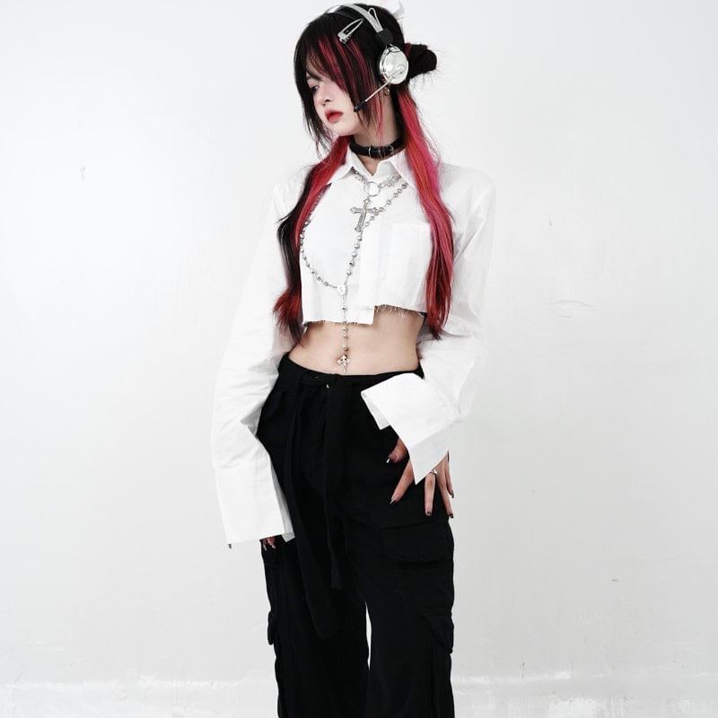 ゴスロリ通販 With U シャツ ショート ハイウエスト 長袖 腹出し へそ出し セクシー 衣装 地雷系 ゴスロリ服 病み服