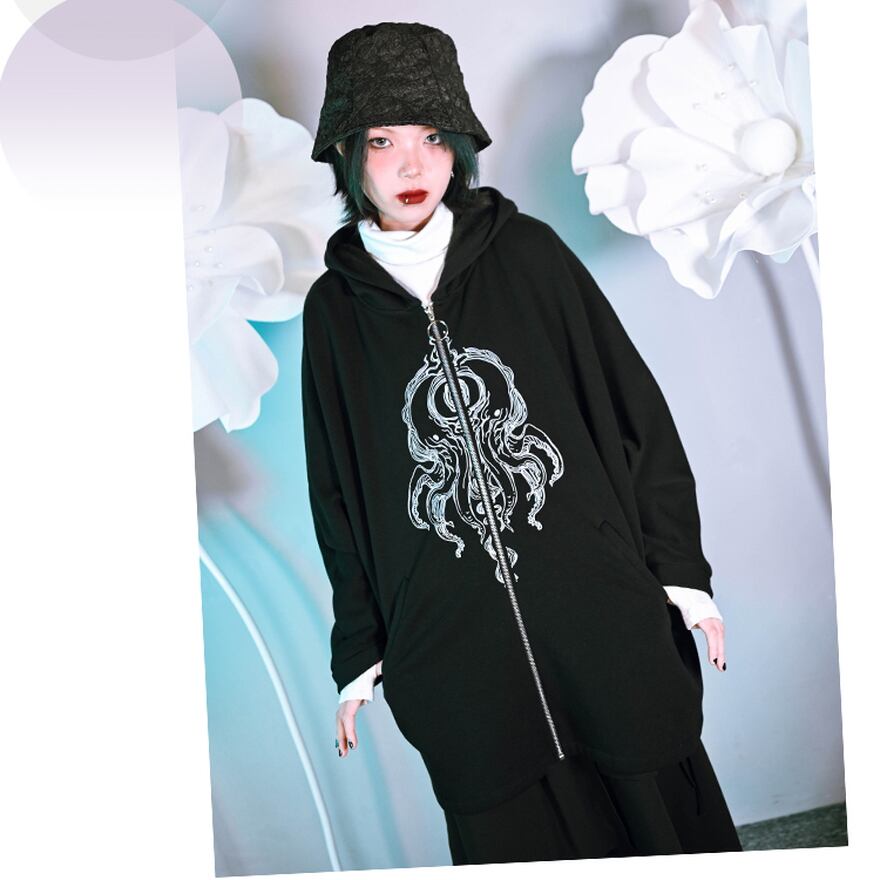 病み可愛いビッグシルエットがおしゃれな古怪舎怪物CLUBシリーズのZIPアップパーカーです。