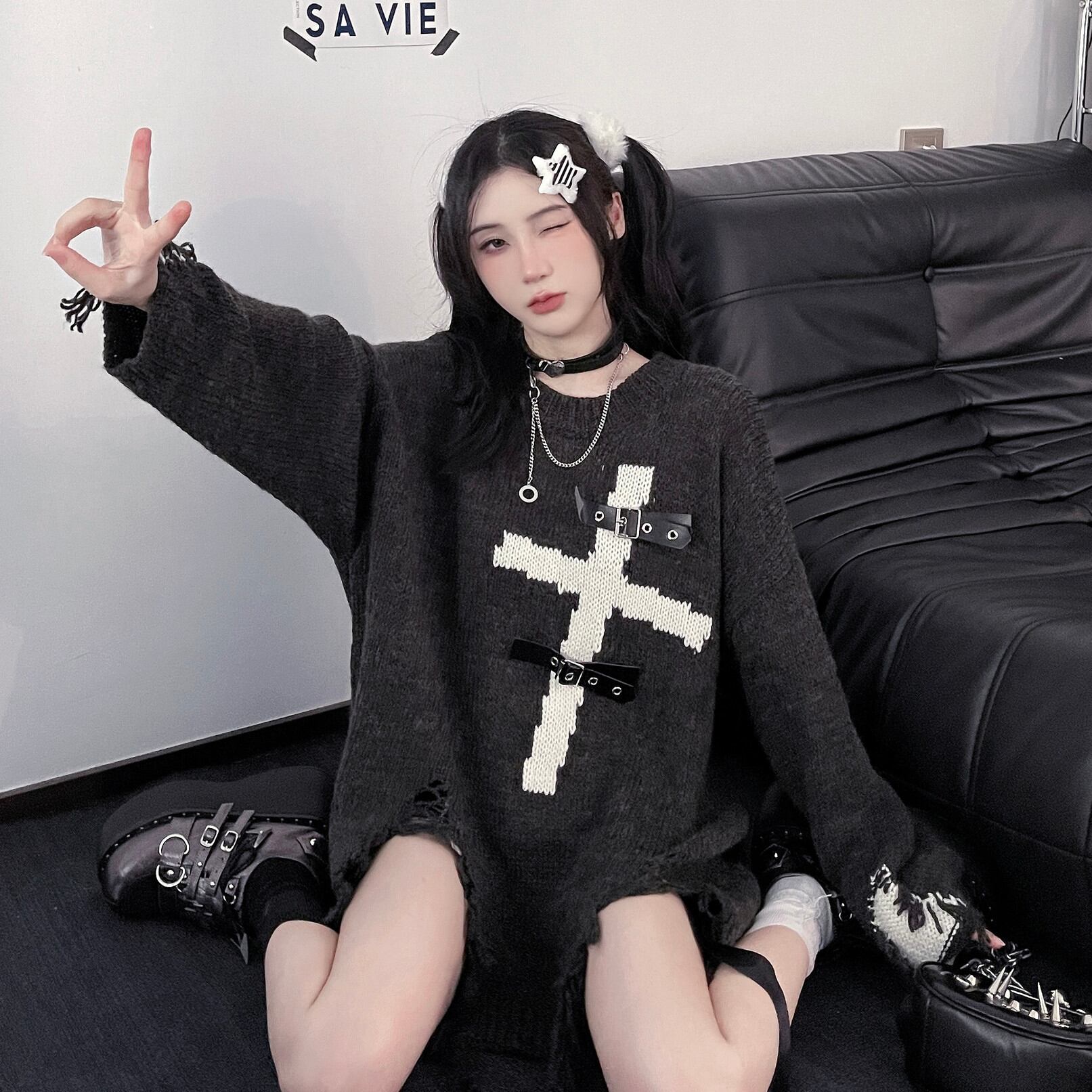 CRAZYGIRLオリジナルゴスロリ系十字架長袖セーターです