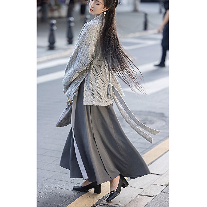 落ち着きのあるグレーが大人増しするシックなチャイナ風カーディガンです