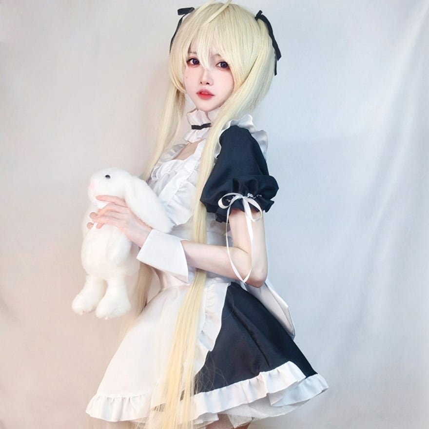 ゴスロリ通販 With U ゴシック ロリィタ メイド服 フルセット ワンピ エプロン 袖カバー チョーカー コスプレ コンカフェ メイドカフェ 秋葉系