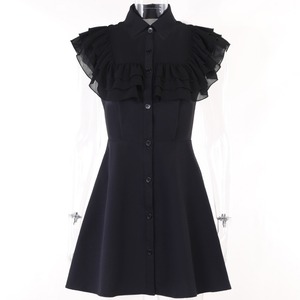 胸元のデコルテの透け感がおしゃれな半袖フリルワンピースです。