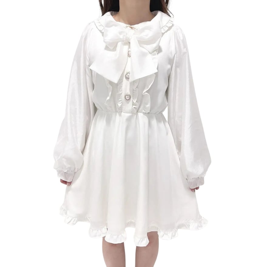 可愛らしいフリルとリボン、ソフトな素材感が魅力のワンピースースです。フリーサイズなので、誰でも着用できるのも魅力的です。女性らしいスタイルを強調するデザインで、普段使いやJKファッションにぴったりです。