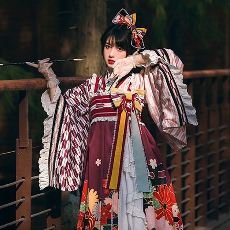 ゴスロリ通販 With U 予約販売 ゴスロリ服 和装 着物 セットアップ 大正浪漫 矢絣柄 レトロ ガーリー