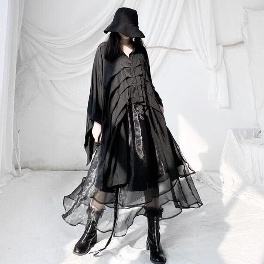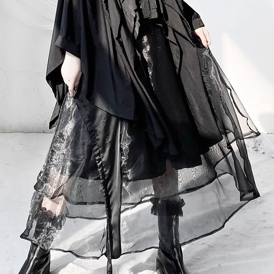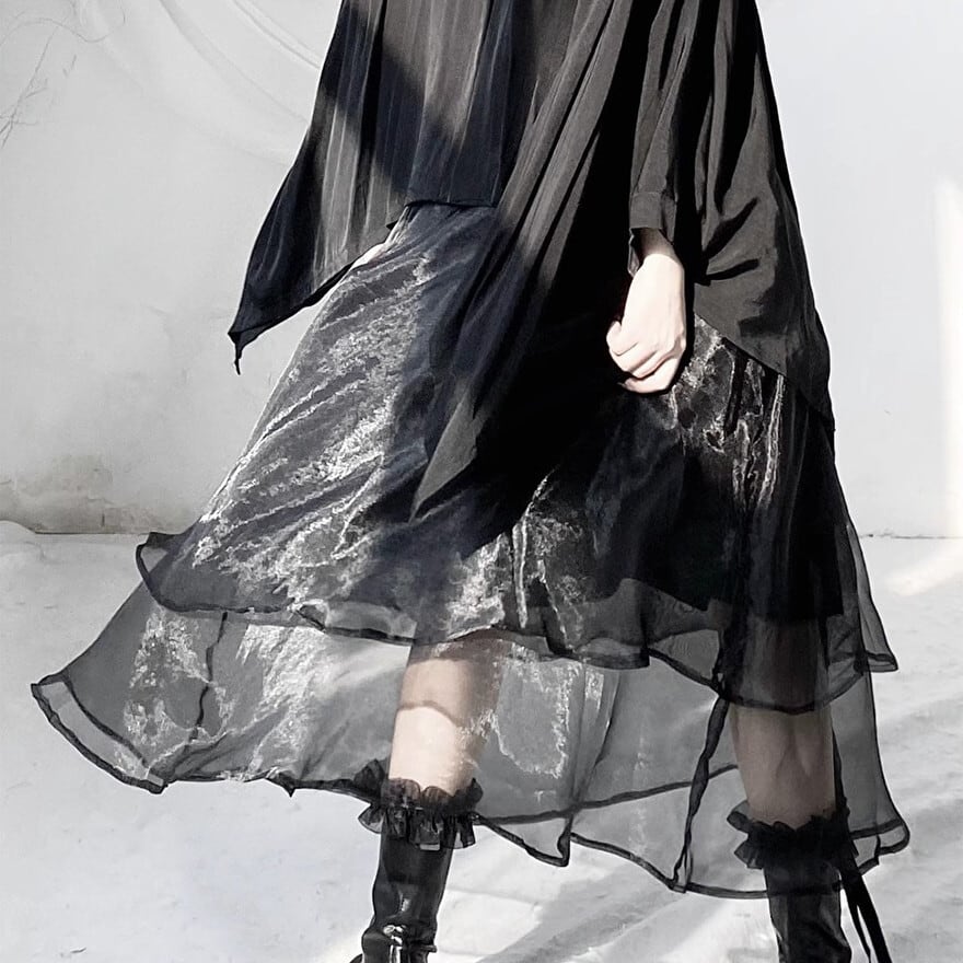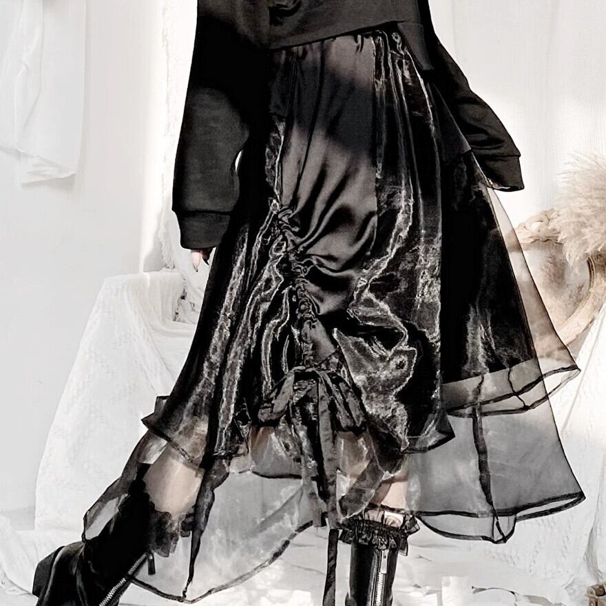 ゴスロリ通販 With U ゴシック ロリィタ スカート 黒ゴス 病み可愛い レース レイヤード 大人 ストリート系 大人増し