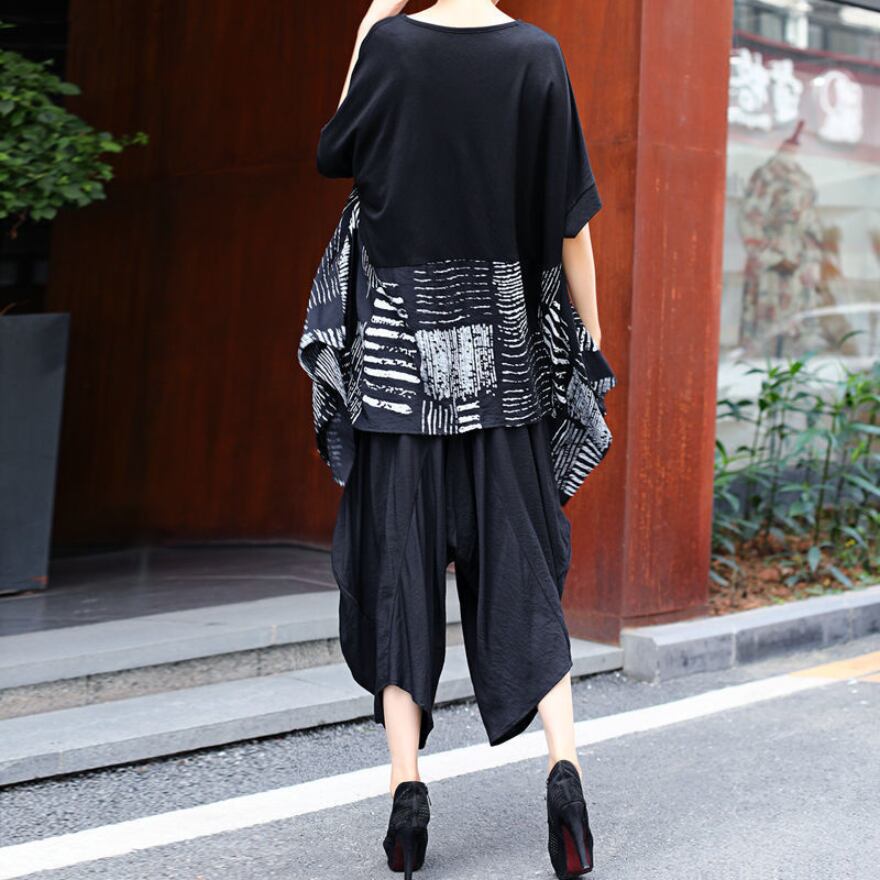 アシンメトリーなゆったりサイズ感のトップスにクロップドパンツのセットアップです。