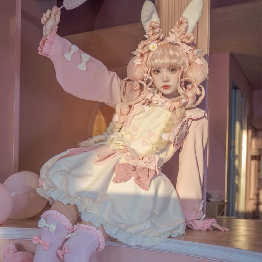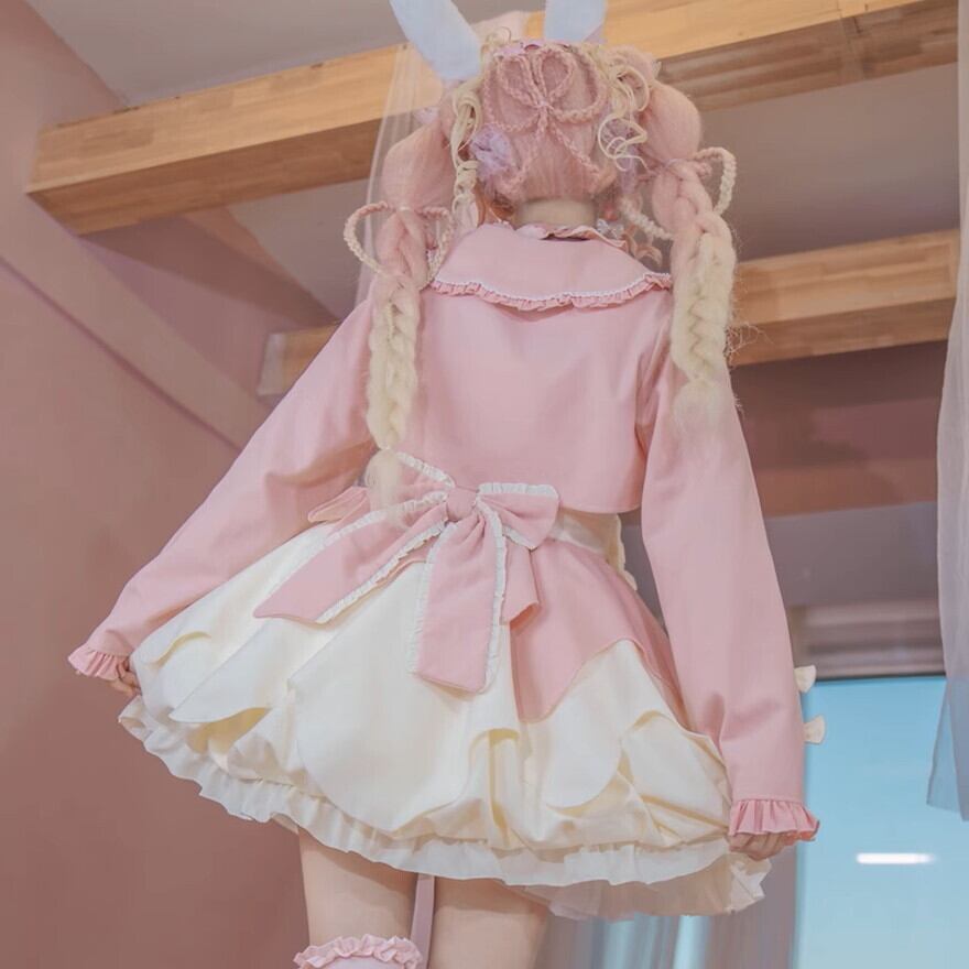 たっぷりフリルにリボンがかわいい甘ロリセットアップです。