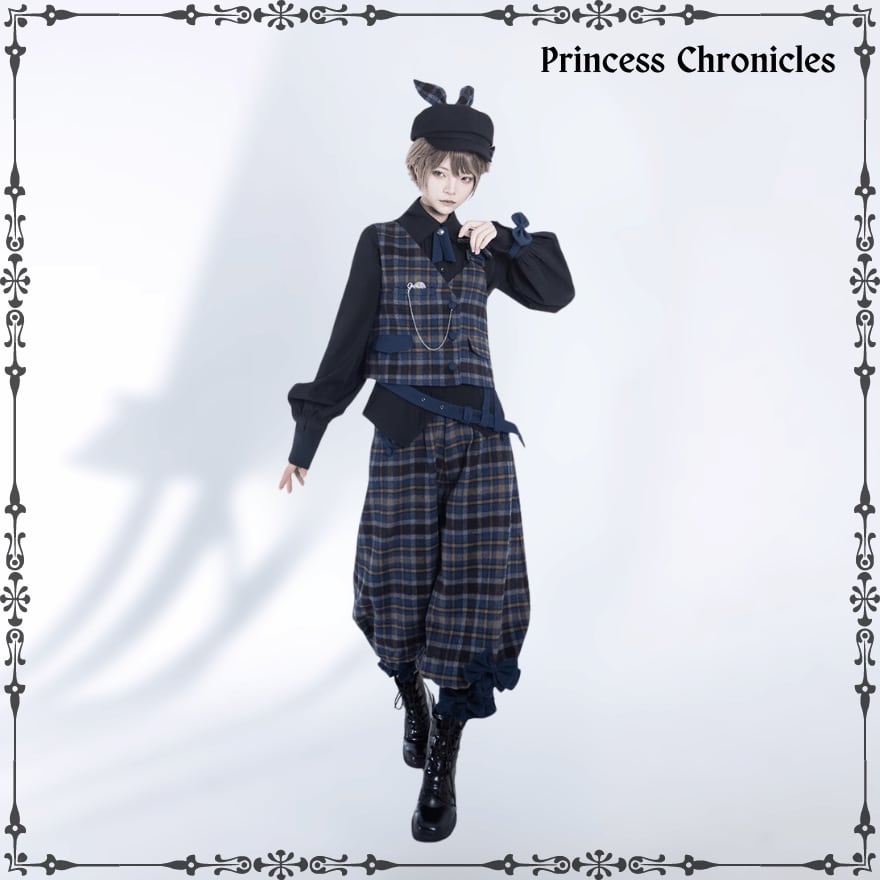 予約販売商品 王子系 皇子系ロリィタ 少年装 男装 ブランド Princess Chronicles 長袖シャツ ブラック チェック柄 ユニセックス イベント 舞台衣装