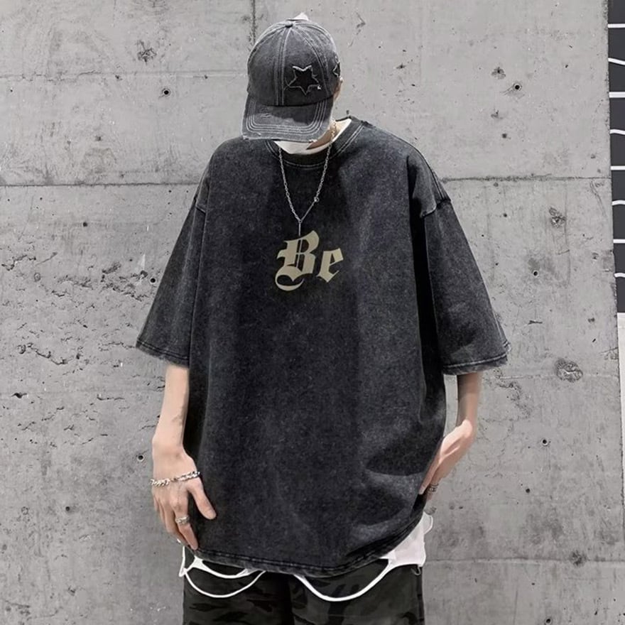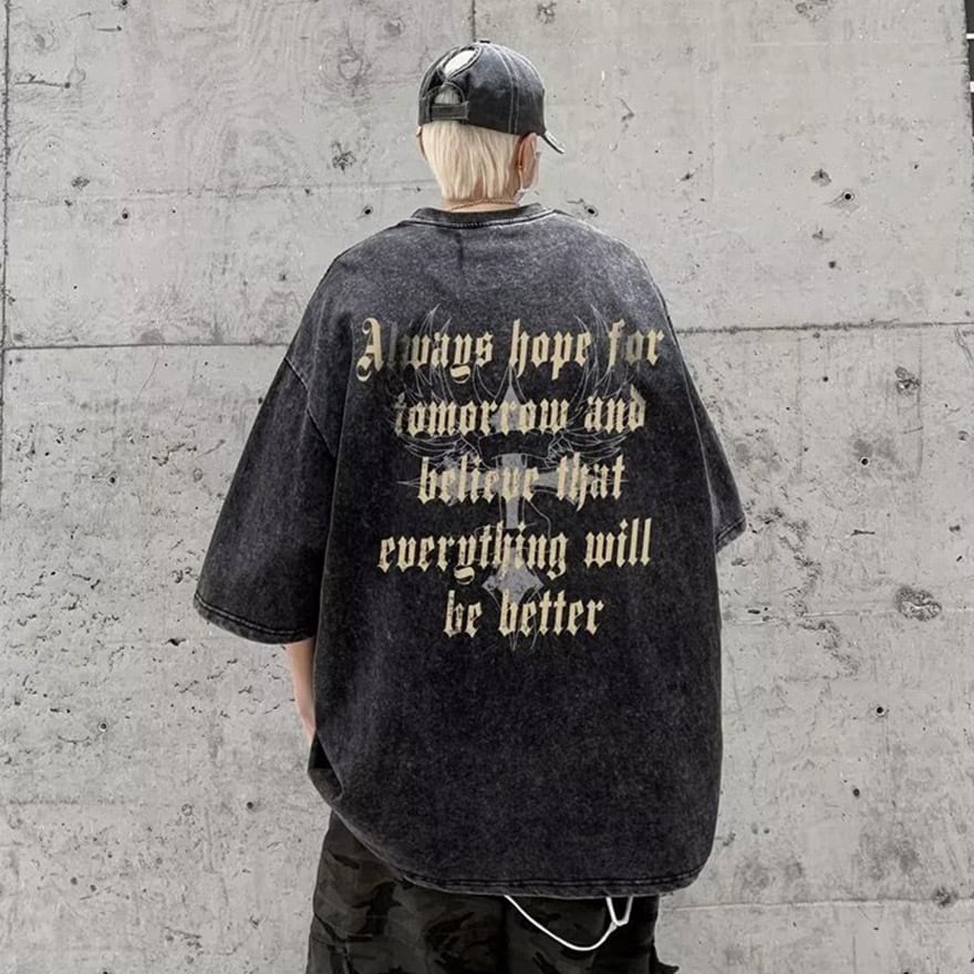ゴスロリ通販 With U 半袖Tシャツ ロゴプリント ウォッシュド ユーズド オーバーサイズ ストリート系 原宿ファッション 病み可愛い 地雷系 量産型 インディーズファッション Y2K