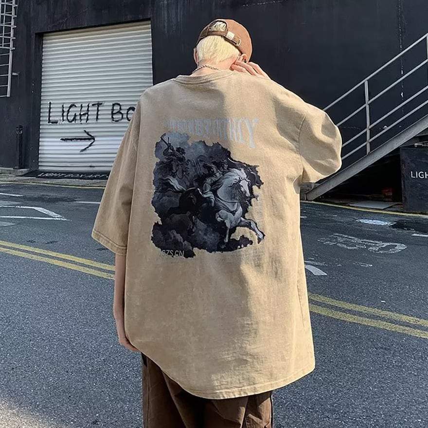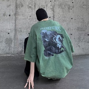 プリントがお洒落、ユーズド加工の大きめTシャツです。