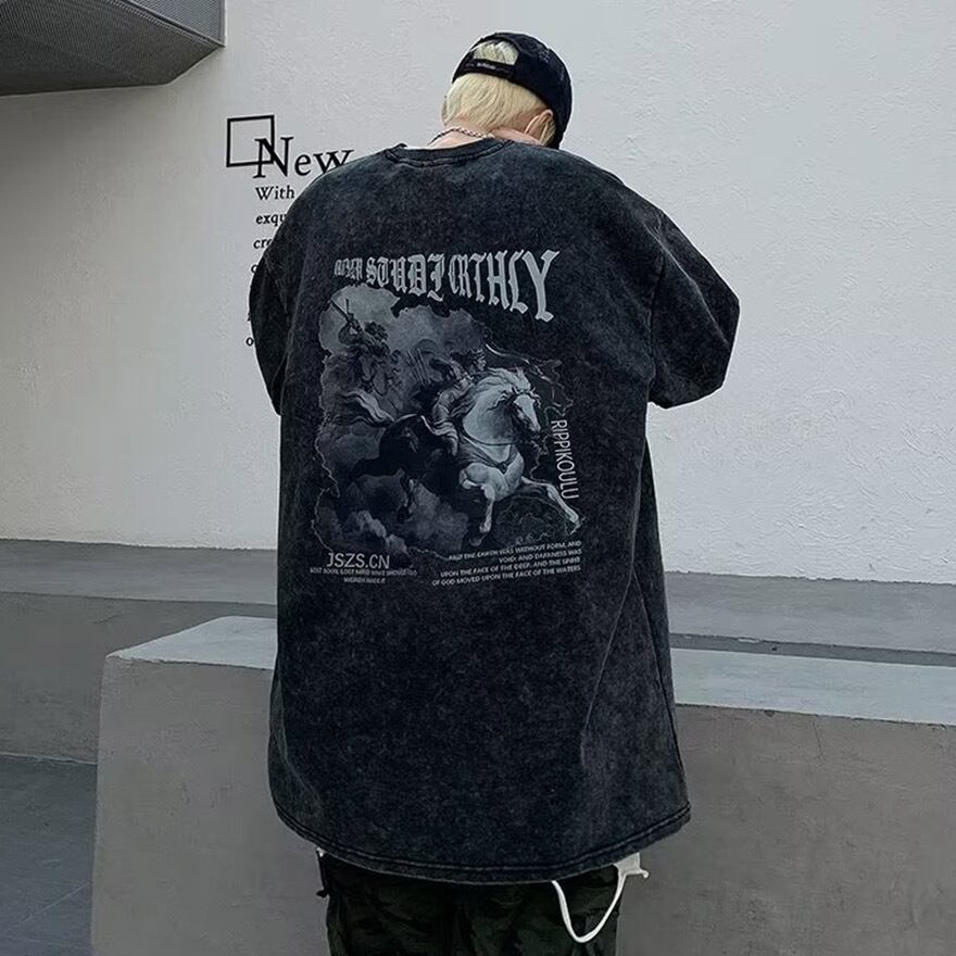 ゴスロリ通販 With U 半袖Tシャツ トップス ユーズド ウォッシュド オーバーサイズ ストリート系 原宿ファッション 病み可愛い 地雷系 量産型 インディーズファッション Y2K