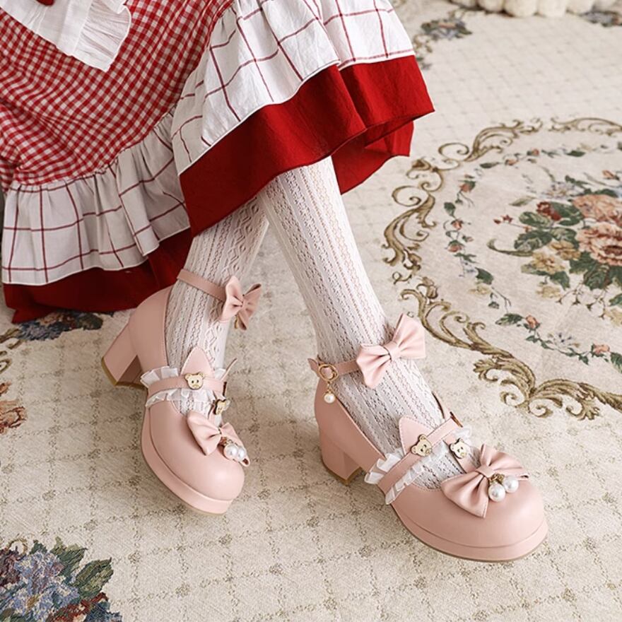 ゴスロリファッション 通販 With U パンプス 靴 マフィンシューズ くまちゃん フリル リボン 原宿系 ゴスロリ服 病みかわいい ロリィタ服