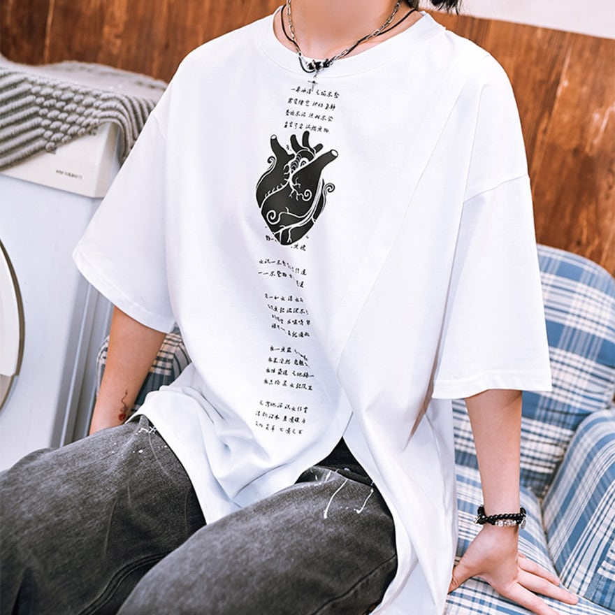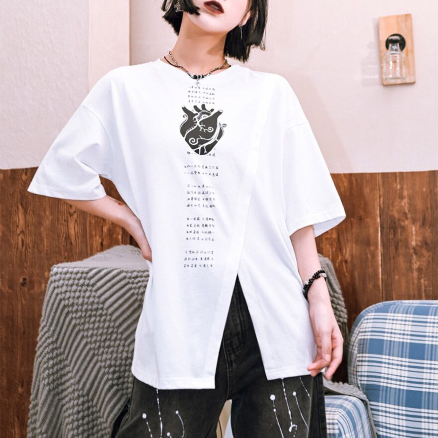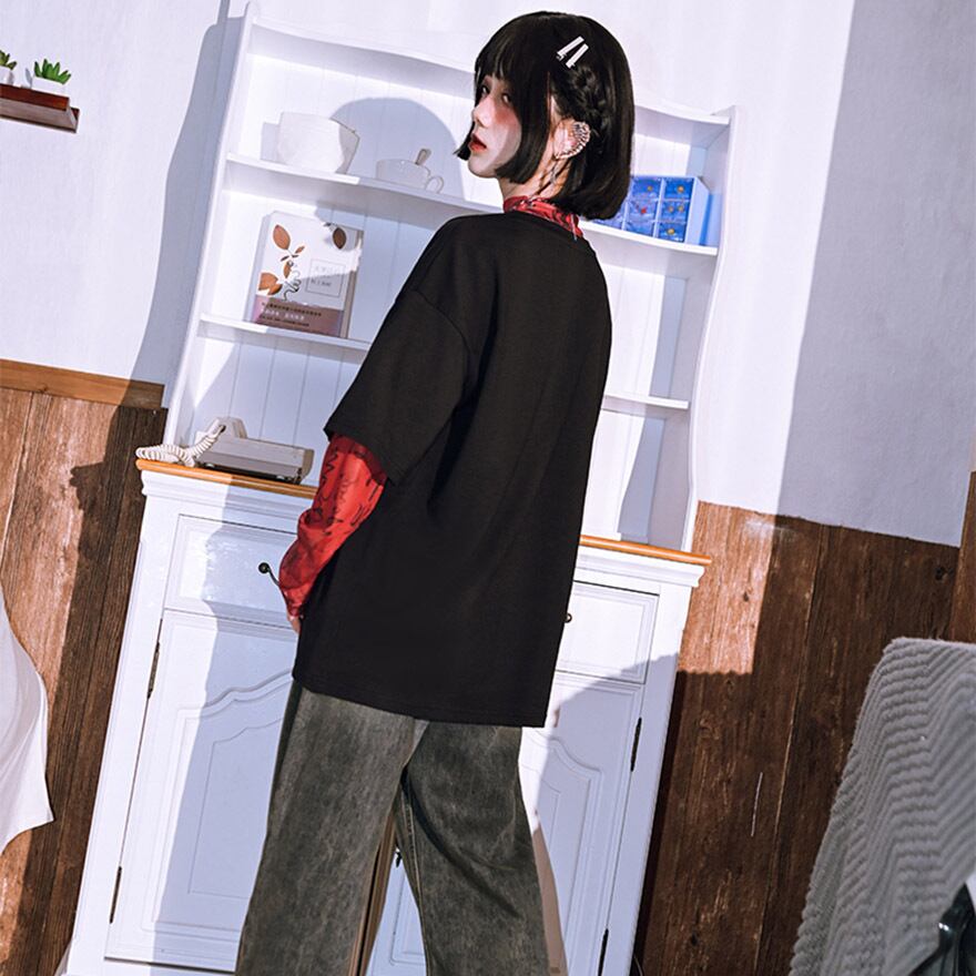 ゴスロリ通販 With U チャイナ風 ゴシック 古怪舎 半袖シャツ 五分袖Tシャツ スリット入り オーバーサイズ