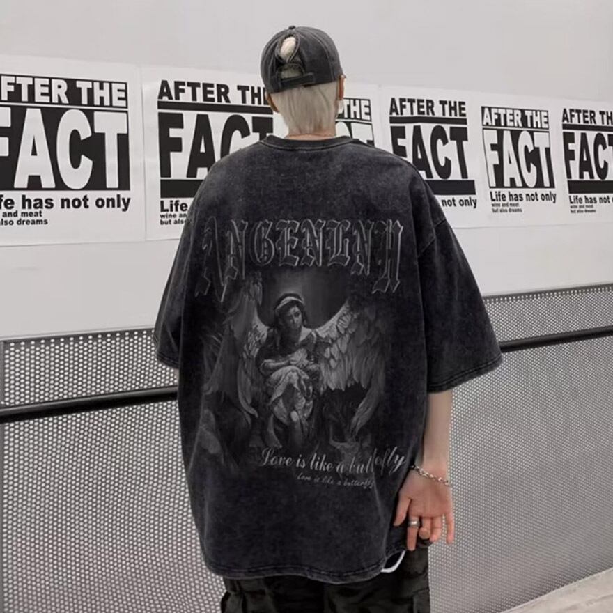 ゴスロリ通販 With U 半袖Tシャツ バックプリント オーバーサイズ ゆったり トップス 病み可愛い ストリート系 原宿系 地雷系 量産型