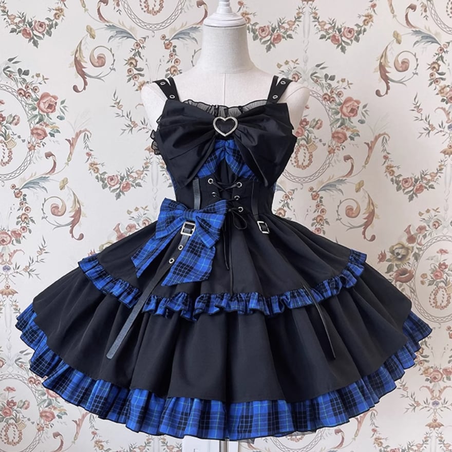 ハードなチェック柄にウエストのレースアップが病み可愛いJSK ジャンパースカートワンピです。