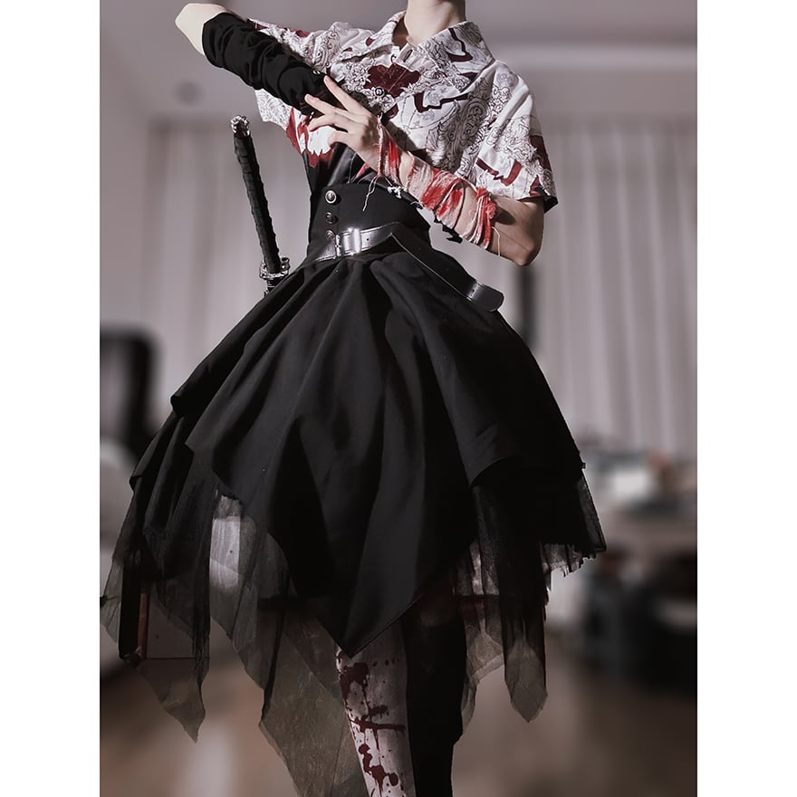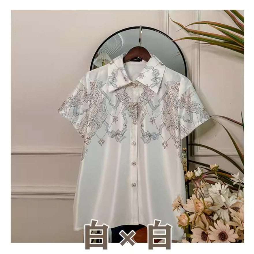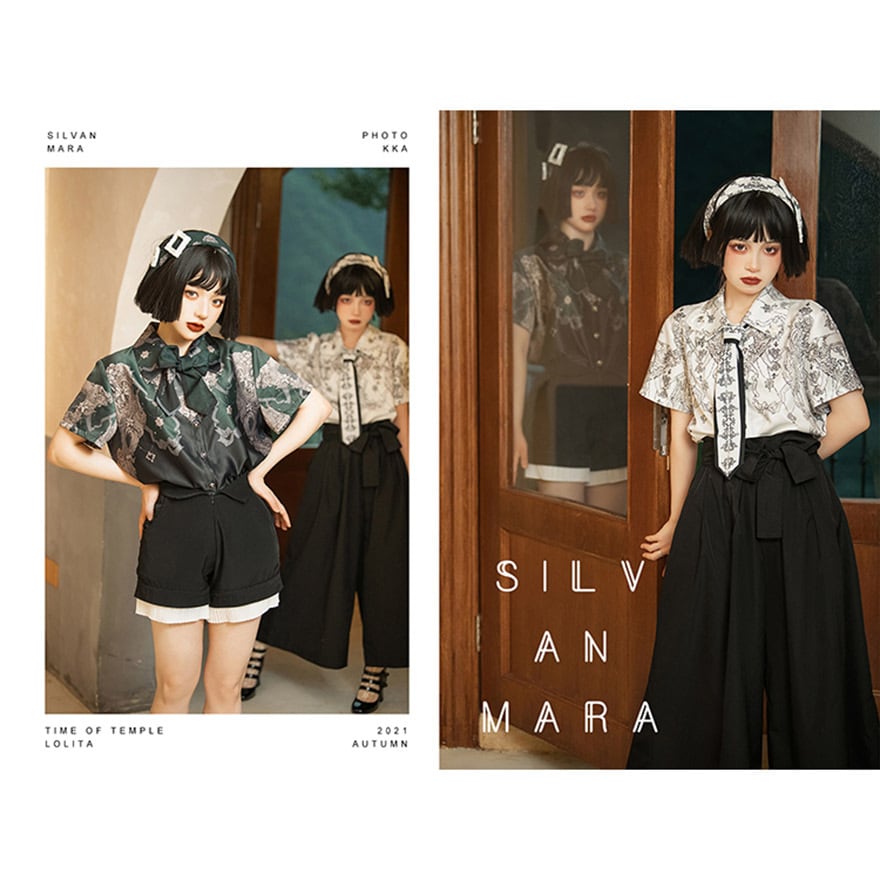 ゴスロリ通販 With U 出荷納期30日 ファッション シャツ 羽織り トップス 柄 半袖 和ロリ 着物 ゴシック 原宿ファッション 地雷系 量産型