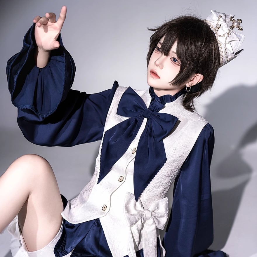 2月出荷 王子系 皇子系ロリィタ 少年装 男装 ブランド Princess Chronicles オリジナル 長袖 シャツ サファイヤブルー 蝶ネクタイシャツ メンズロリータ ユニセックス 麗人 イベント 舞台衣装