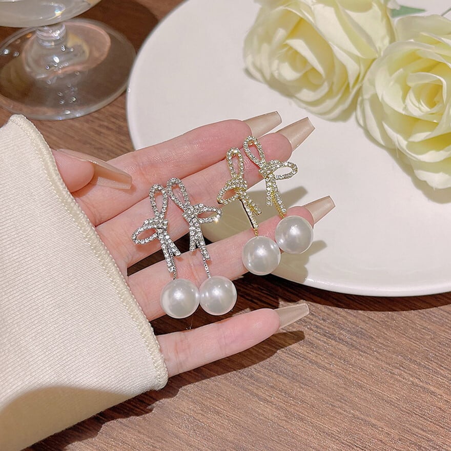 上品で大人キレイめなフェイクパールのイヤリングです。
