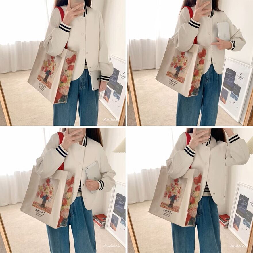 ゴスロリ通販 With U ファッション 油絵風 トートバッグ ANDCICI 帆布 モネ《牡丹の花瓶》