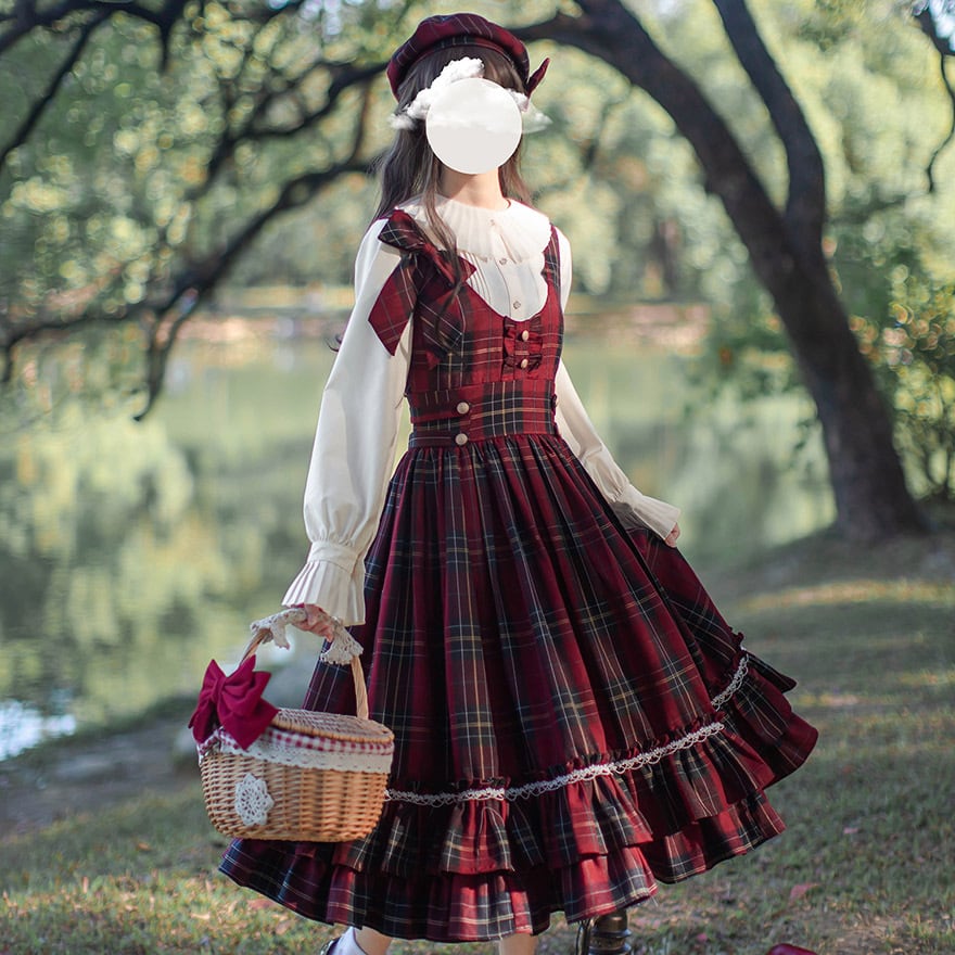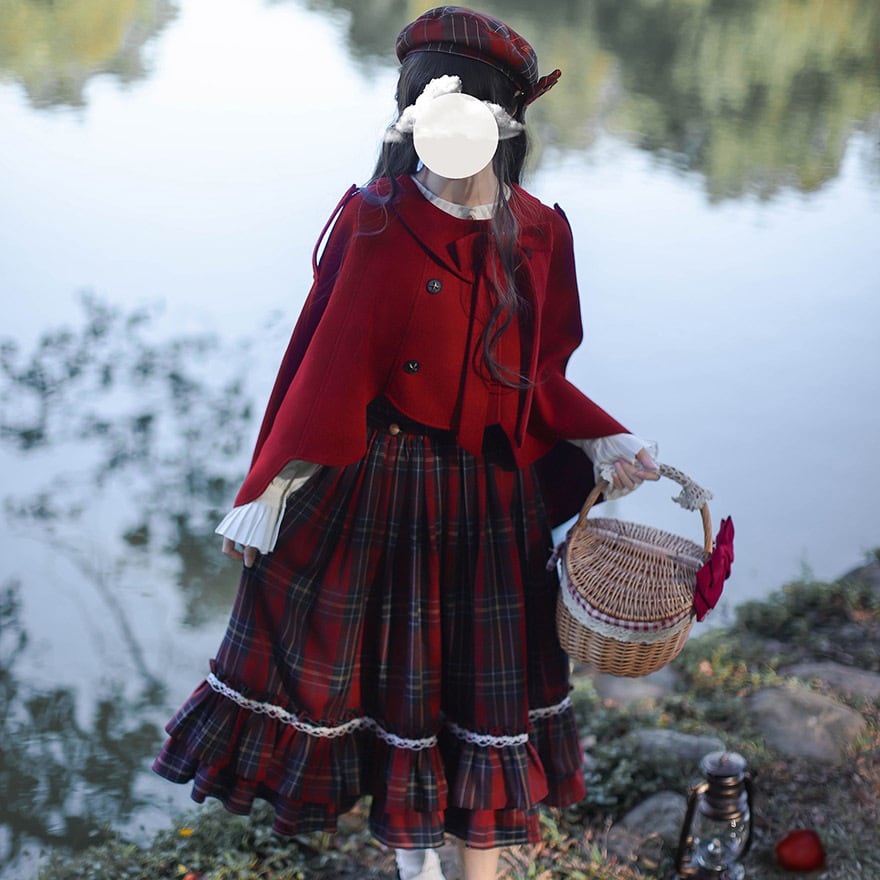ゴスロリ通販 With U クラロリ ベレー帽 帽子 チェック柄 リボン 森ガール ガーリー 普段着使い 量産型 原宿ファッション かわいい ろりぃたふぁっしょん
