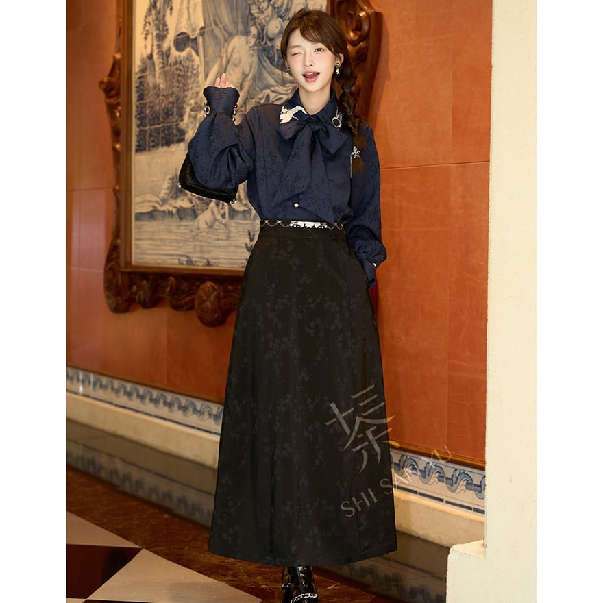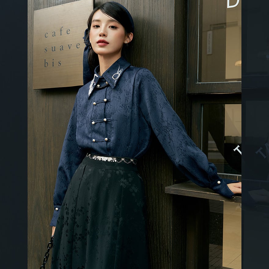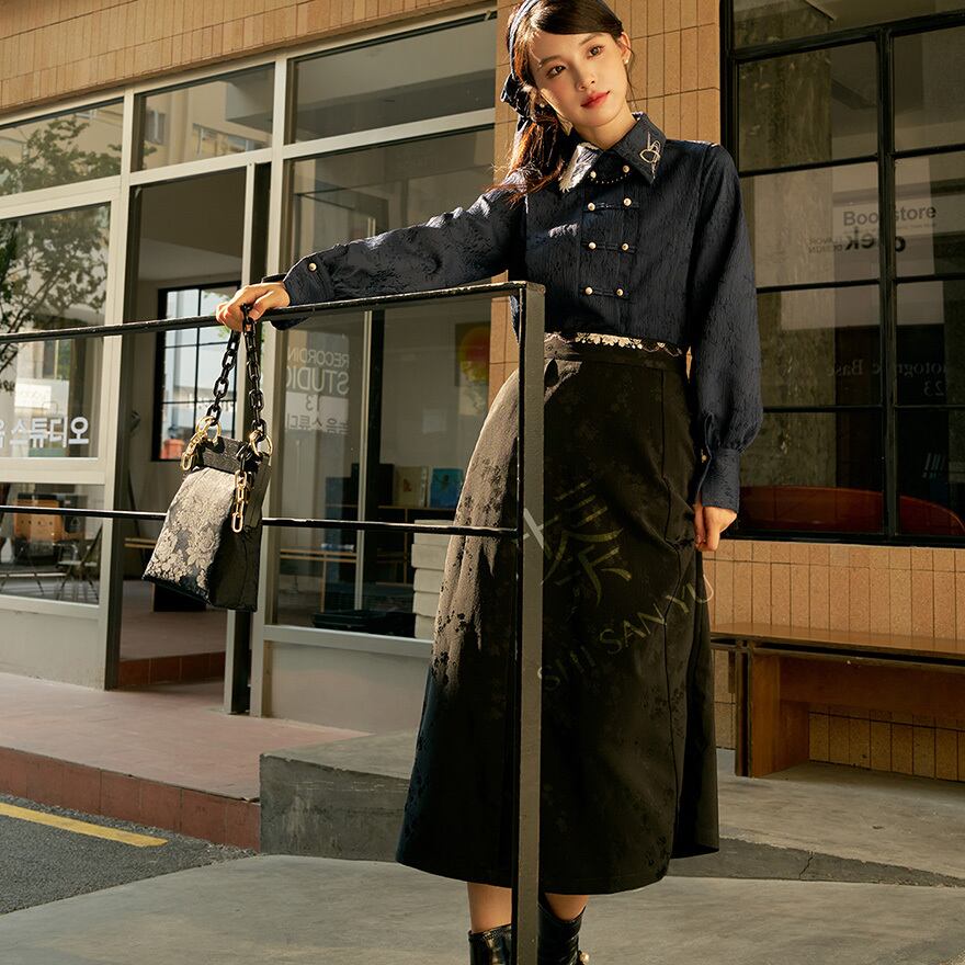 ゴスロリ通販 With U ファッション 中華ロリータ セットアップ ツーピース シャツ スカート 刺繍 レトロ エレガント 普段着使い 原宿系 ゴスロリ服 ロリィタ服