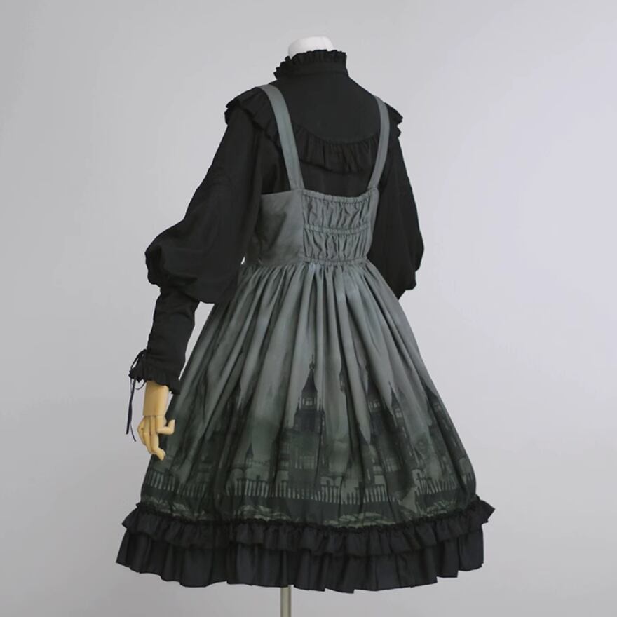 キャッスルプリント柄のゴスロリジャンパースカートです。